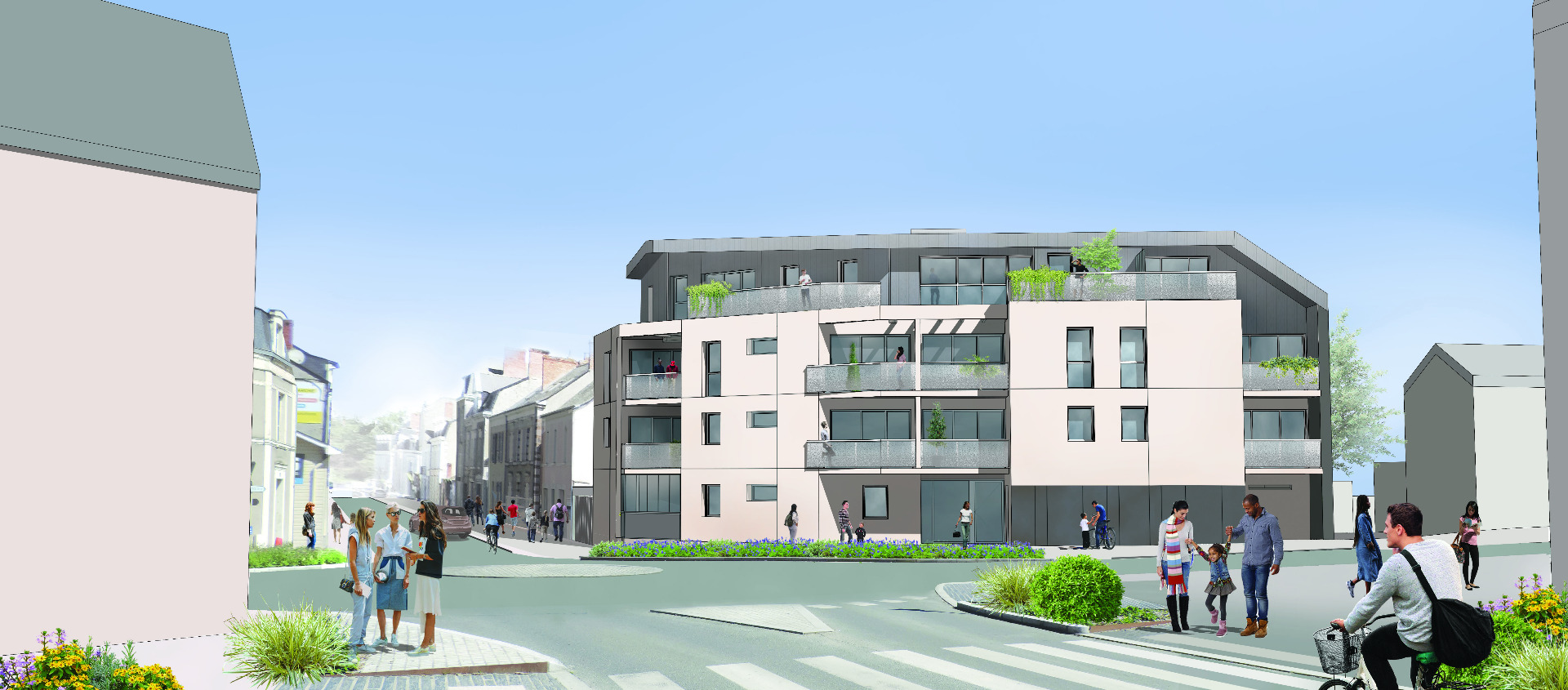 Situé sur le foncier de l'ancien hôtel de la gare, trop vétuste pour être réhabilité, cette opération de 14 logements permet de restituer un volume bâti autour du rond point de la gare. Ce projet s'inscrit dans le prolongement de la reconquête foncière des anciennes friches ferroviaires devenu une véritable polarité urbaine de Segré grâce à l'implantation de services médicaux.